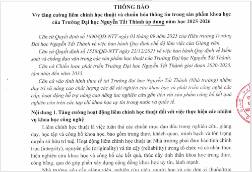 Xem chi tiết thông báo: Thông báo Vv tăng cường liêm chính học thuật và chuẩn hóa thông tin trong sản phẩm khoa học của...