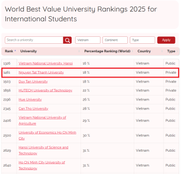 NTTU – Nhóm Cơ sở dữ liệu Đại học của Study Abroad Aide (SAA) vừa công bố bảng xếp hạng các đại học có giá...
