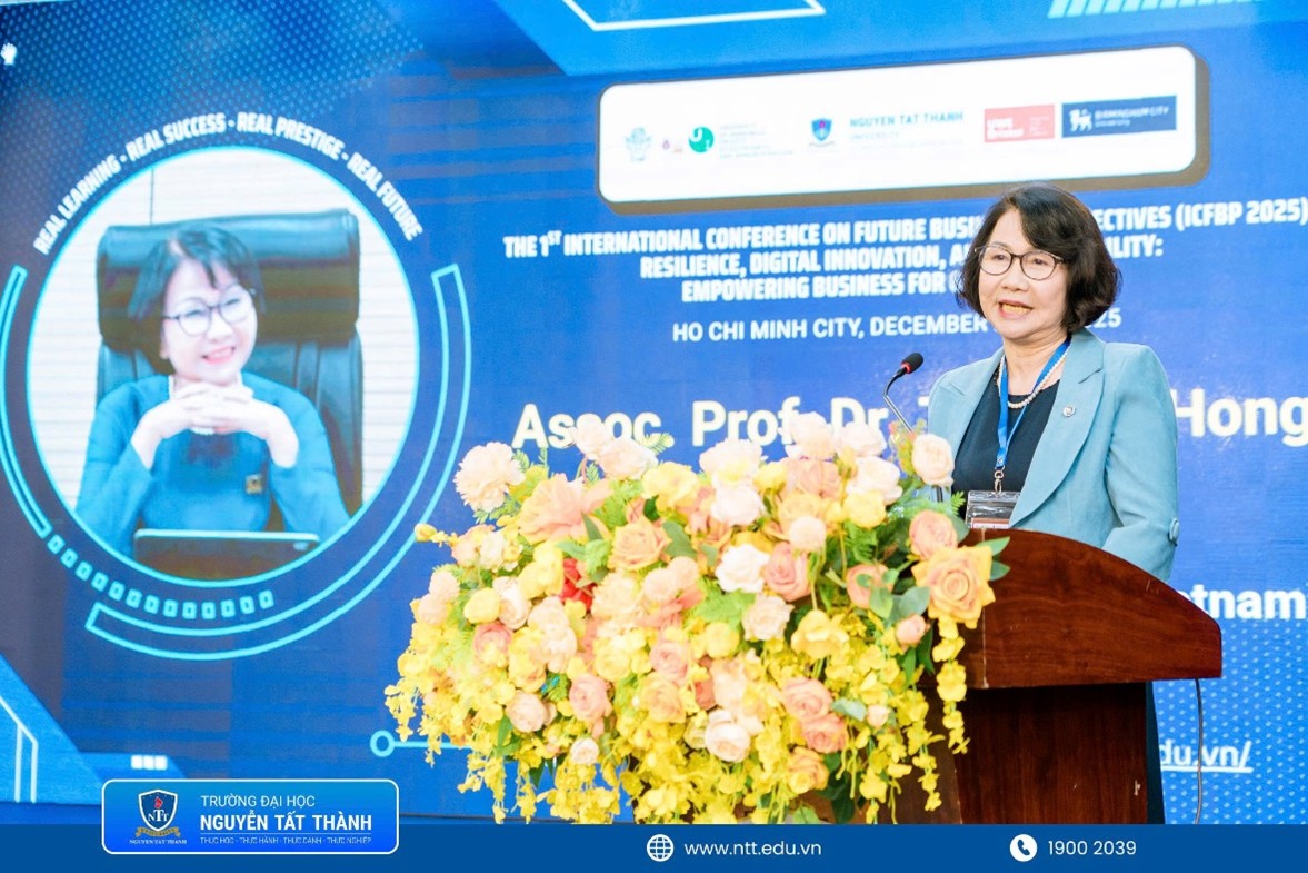 Sáng ngày 20/12/2025, Lễ khai mạc hội thảo đã diễn ra trong không khí trang trọng, chuyên nghiệp và quy mô. Phát biểu chào mừng và khai mạc hội thảo, PGS.TS. Trần Thị Hồng – Phó Hiệu trưởng Trường ĐH Nguyễn Tất Thành đã gửi lời chào mừng đến các chuyên gia, nhà khoa học, nhà quản trị, giảng viên, sinh viên các trường đại học. PGS.TS. Trần Thị Hồng nhấn mạnh ý nghĩa của ICFBP 2025 trong bối cảnh kinh doanh toàn cầu đang đối mặt với nhiều biến động từ kinh tế, công nghệ đến môi trường và xã hội. ICFBP 2025 được xem là diễn đàn học thuật quan trọng, tập trung vào khả năng phục hồi của tổ chức, đổi mới sáng tạo và phát triển bền vững – những trụ cột then chốt thúc đẩy tăng trưởng dài hạn. Cô cũng gửi lời cảm ơn sâu sắc đến các đơn vị đồng tổ chức, các nhà khoa học và đối tác học thuật quốc tế đã đồng hành cùng nhà trường trong việc tổ chức một hội thảo quốc tế có ý nghĩa và giá trị học thuật cao.