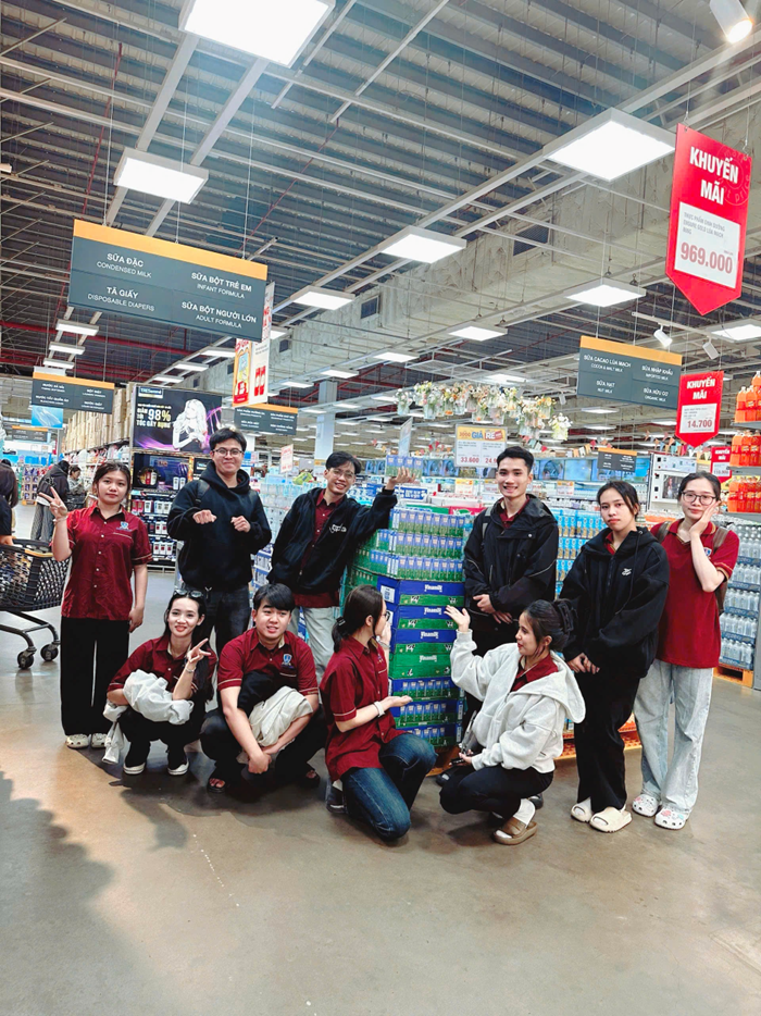 Hình: Nhóm sinh viên khảo sát sản phẩm Vinamilk tại siêu thị Emart