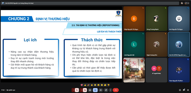 Khoảng thời gian online ấy như một bước chuyển nhẹ nhàng từ không khí sum vầy ngày Tết sang nhịp học tập nghiêm túc. Dù còn ở quê nhà hay đã trở lại thành phố, sinh viên Marketing vẫn đều đặn đăng nhập lớp học, bật camera, thảo luận nhóm và tiếp tục những bài giảng chuyên ngành.