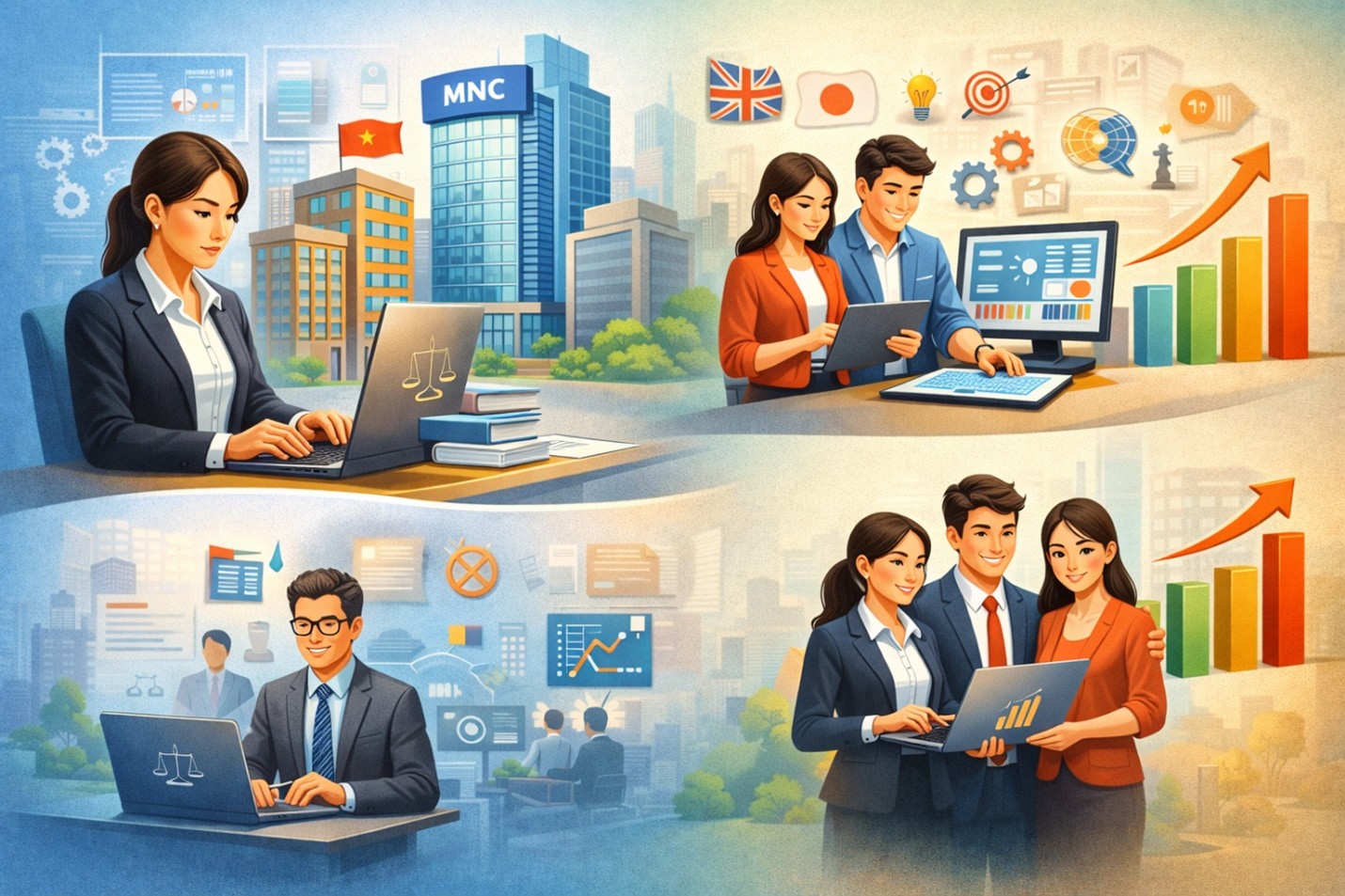 Môi trường làm việc cũng ảnh hưởng trực tiếp đến mức lương. Doanh nghiệp đa quốc gia, công ty công nghệ hoặc tổ chức tài chính thường có chính sách đãi ngộ cao hơn doanh nghiệp nhỏ.