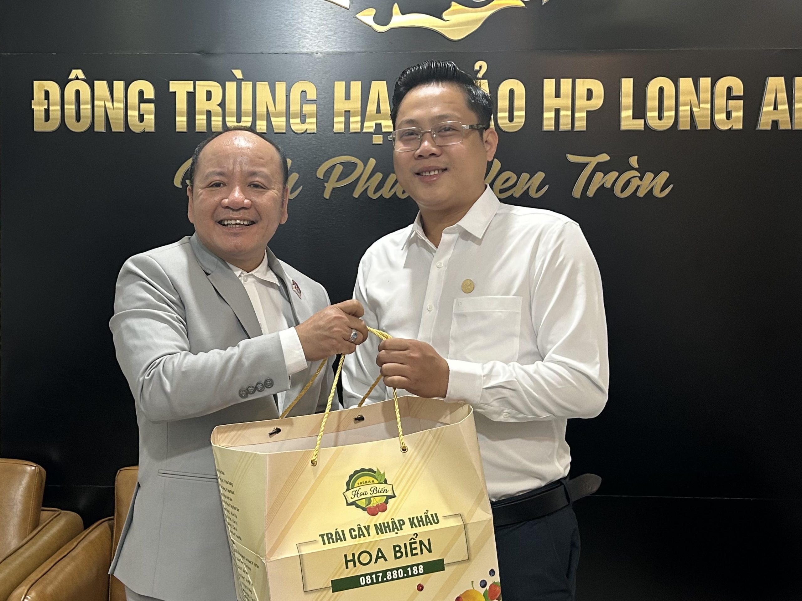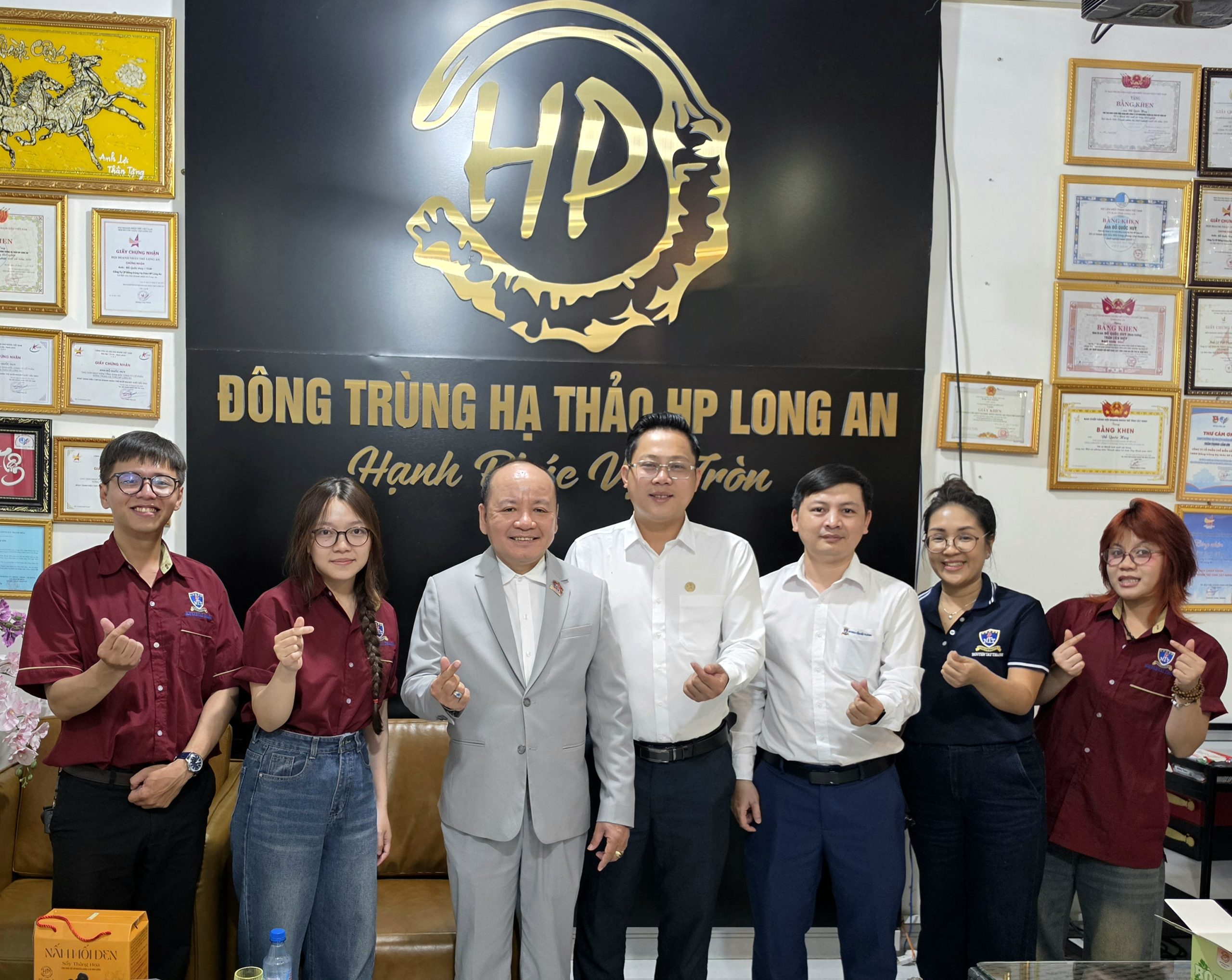 Ban lãnh đạo khoa QTKD tặng quà gặp mặt Ban giám đốc công ty công ty Đông Trùng Hạ Thảo HP Long An.