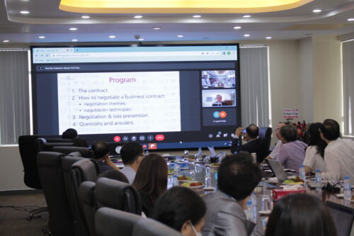 Kết thúc trình bày là phần tham luận của các nhà khoa học, nhà nghiên cứu, chuyên gia, GV, học viên về các đề tài. Phần tham luận sôi nổi về các tình huống thực tiễn được đề cập, Đề xuất các phương pháp giảng dạy và phương án hợp tác với doanh nghiệp nhằm tăng cường trải nghiệm thực tiễn, bài tập thực hành cho SV. Phần cuối Hội thảo còn có sự tham gia trình bày của Ông Davide Gallasso, hiện ông đang là thành viên của đoàn luật sư Lecco, cố vấn luật của các tòa án cấp cao tại Ý và Anh, đồng thời ông cũng được cấp giấy phép hành nghề luật sư tại Việt Nam. Phần trình bày được thực hiện online qua Google meet nhưng hết sức hấp dẫn với nội dung về Xây dựng Hợp đồng Thương mại quốc tế – Phương pháp đàm phán và thực hiện trong một tình huống Hợp đồng thực tiễn do chính ông đảm nhiệm.