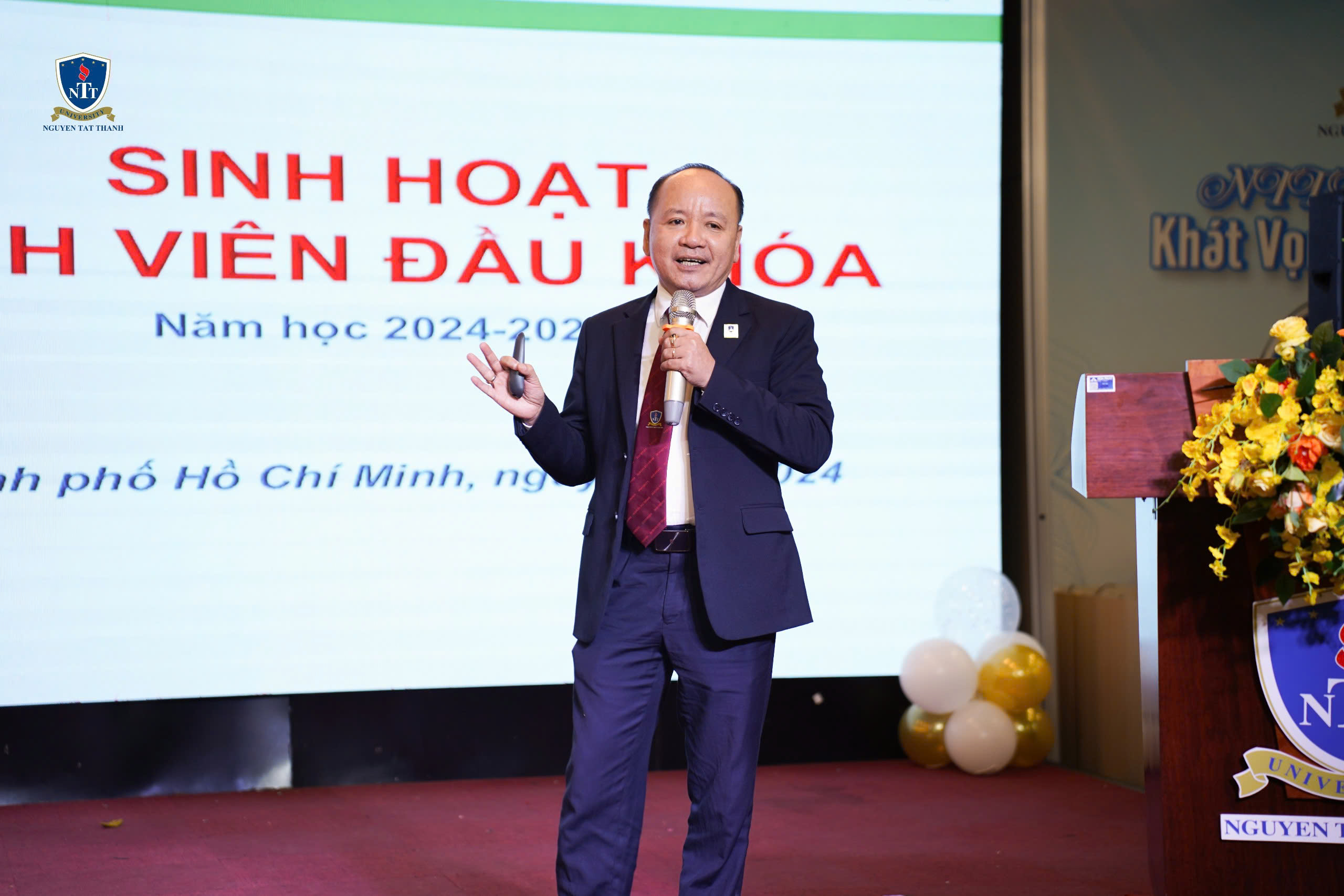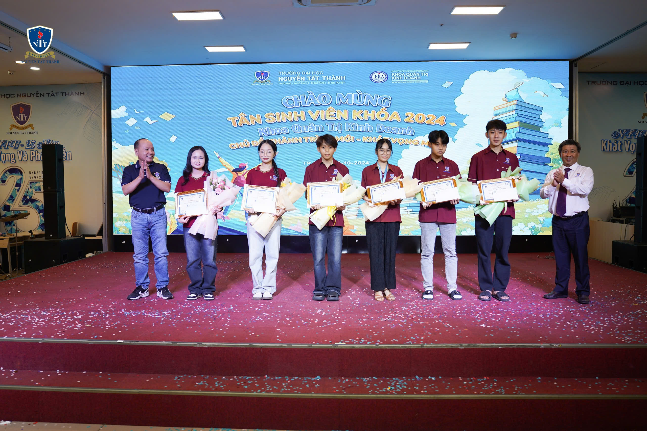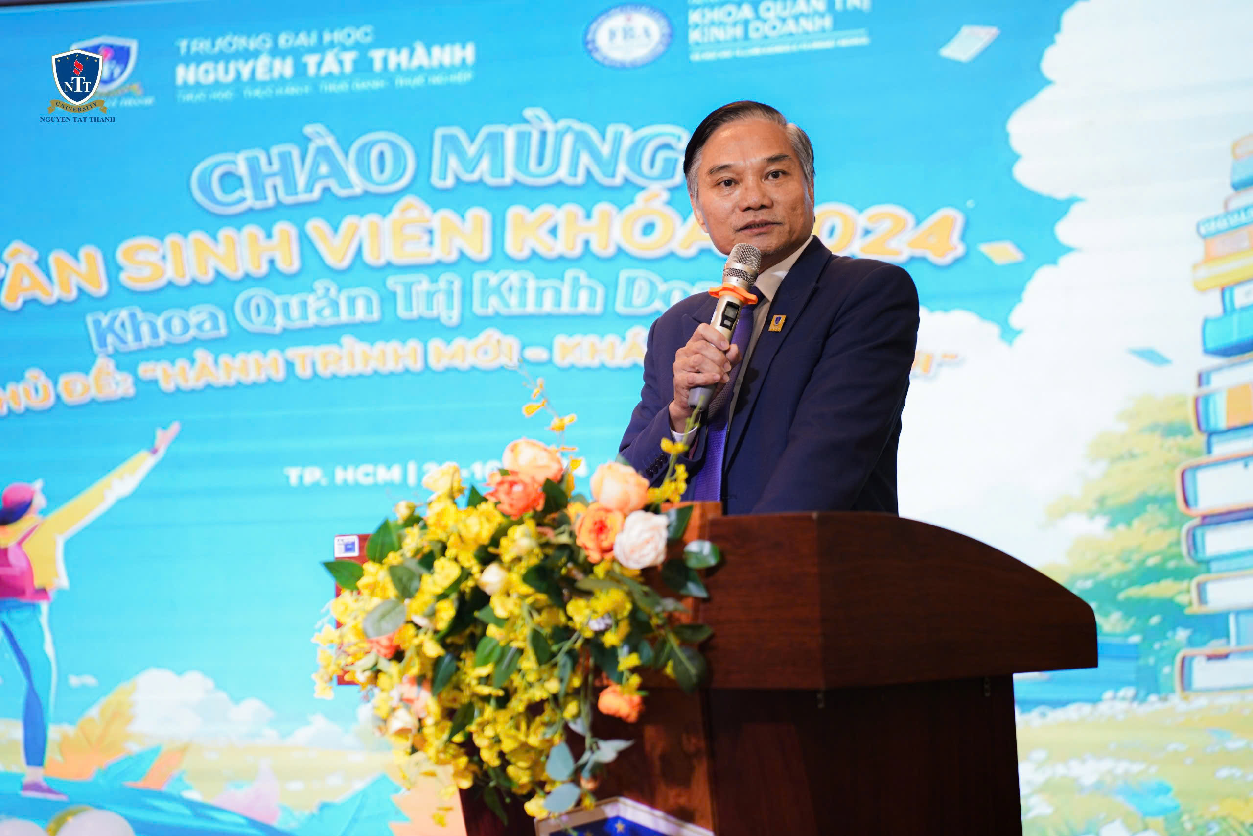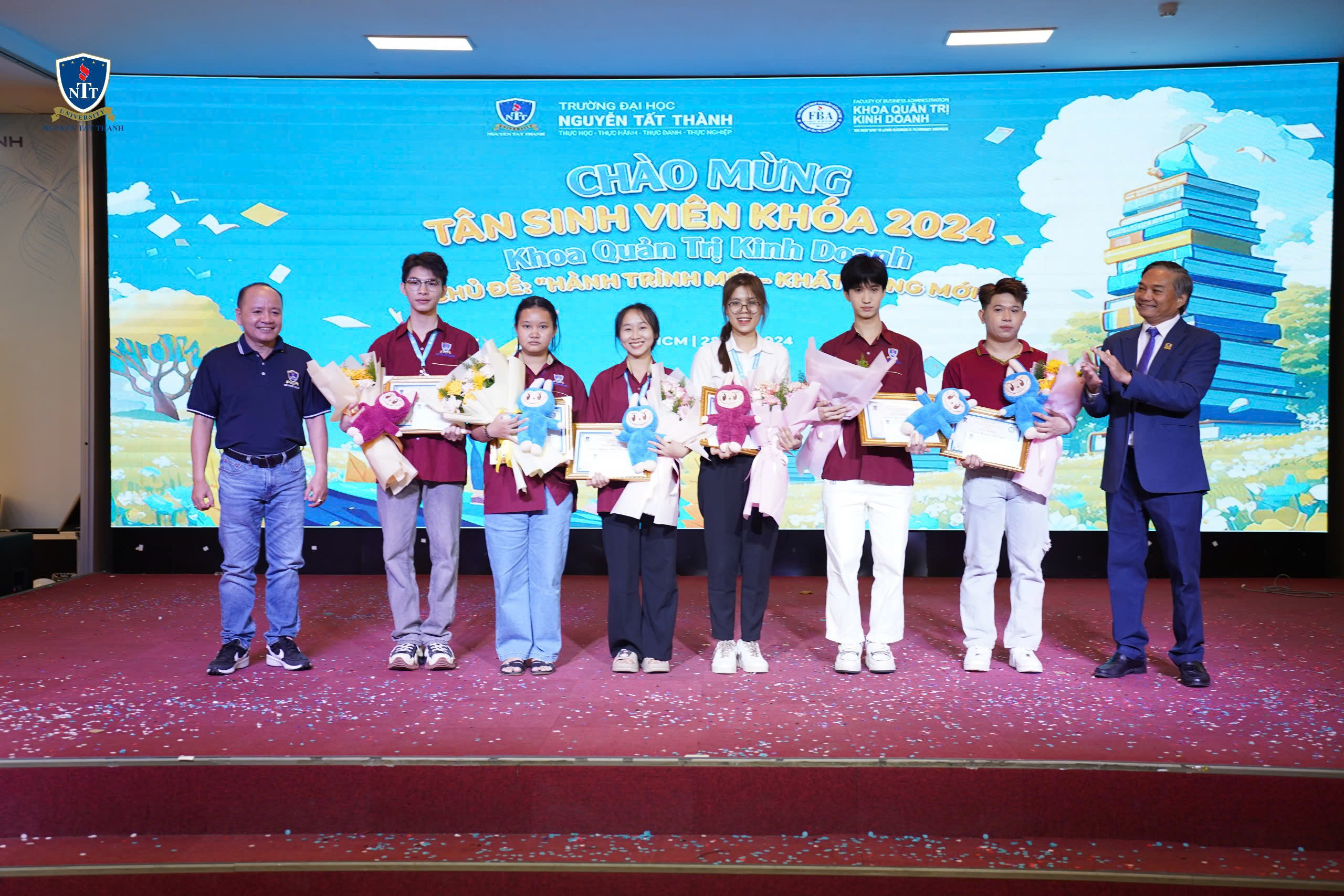 Vào ngày 28/10/2024, Khoa Quản trị Kinh doanh – Trường Đại học Nguyễn Tất Thành đã long trọng tổ chức buổi lễ chào đón tân sinh viên khóa 2024. Buổi lễ không chỉ đánh dấu bước khởi đầu cho các tân sinh viên trong hành trình học tập tại Khoa QTKD – NTTU, mà còn khơi dậy những ước mơ và khát vọng cho một tương lai tươi sáng.