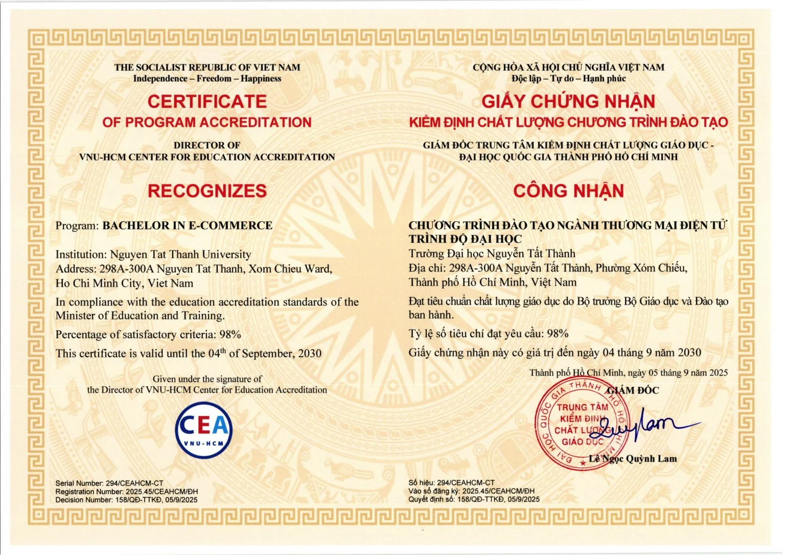 Mục tiêu đào tạo và chuẩn đầu ra của chương trình đào tạo ngành Thương Mại Điện Tử được xác định rõ ràng, phù hợp với Tầm nhìn – Sứ mệnh của Nhà Trường, của Khoa và phù hợp với mục tiêu của giáo dục đại học theo quy định hiện hành của Bộ Giáo Dục và Đào Tạo. Với mục tiêu là đào tạo theo định hướng ứng dụng, cung cấp nguồn nhân lực có chất lượng, chuyên môn, có khả năng mở rộng kiến thức, sáng tạo và đổi mới, có sức cạnh tranh cao trong thị trường lao động.