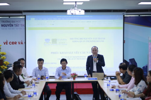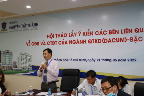 Chủ trì hội thảo là Thầy Bùi Văn Thời, Phó Trưởng Khoa QTKD Đại học Nguyễn Tất Thành; CB-GV khoa QTKD; đặc biệt là 20 doanh nhân là Tổng giám đốc, Phó Tổng giám đốc, Giám đốc của các doanh nghiệp cùng 10 cựu sinh viên về tham dự để đóng góp ý kiến trong việc xây dựng khung năng lực nghề nghiệp chương trình đào tạo ngành QTKD.